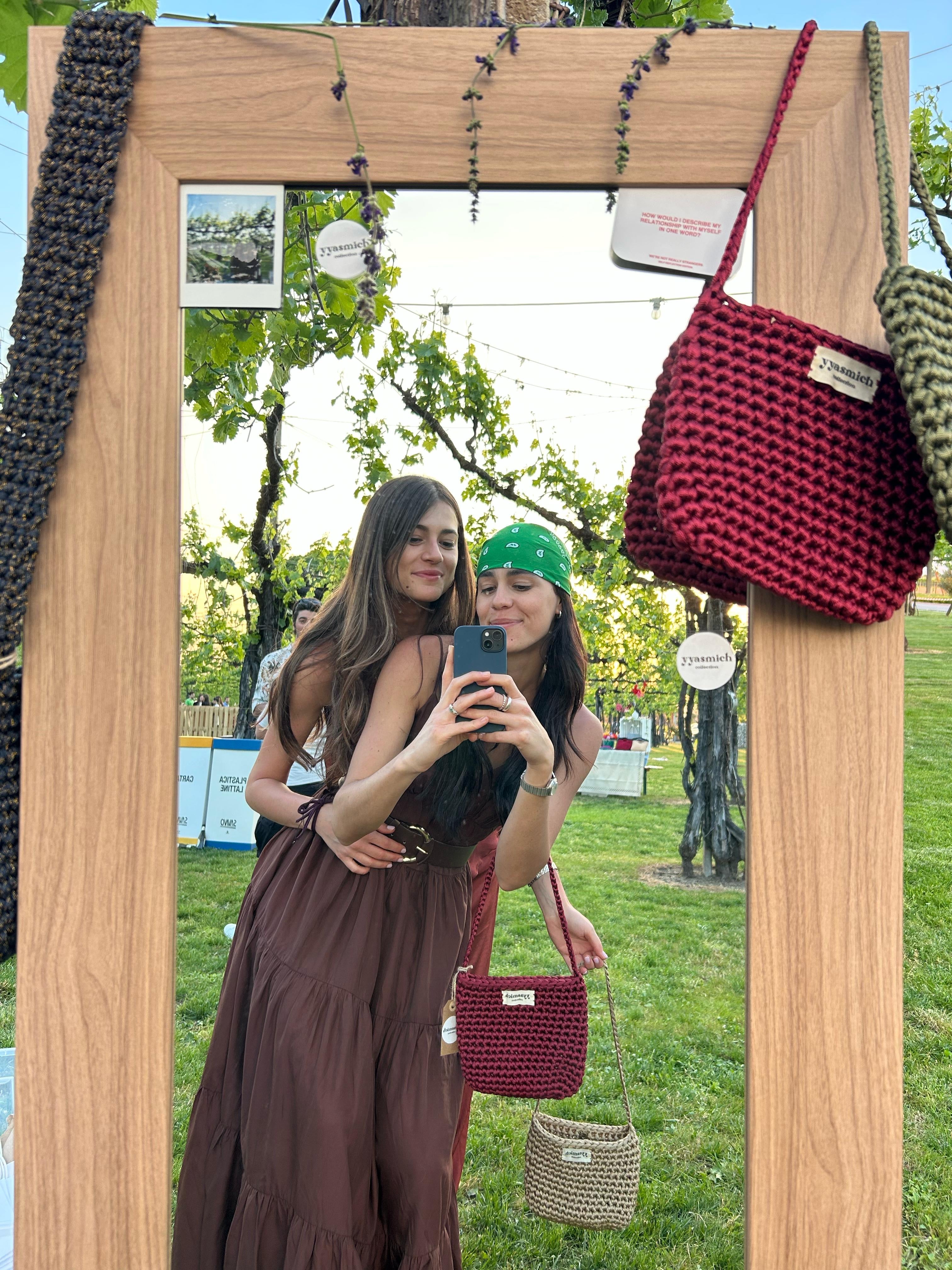 We are a handmade bag and accessory brand, created in 2023 by two sisters, Yas & Nella (nicknames). Living apart—one in Milan and the other in Treviso—we are united by our shared passion for crochet and creativity. Our goal has always been to have fun doing what we love, creating something unique and colorful that brings joy to others.