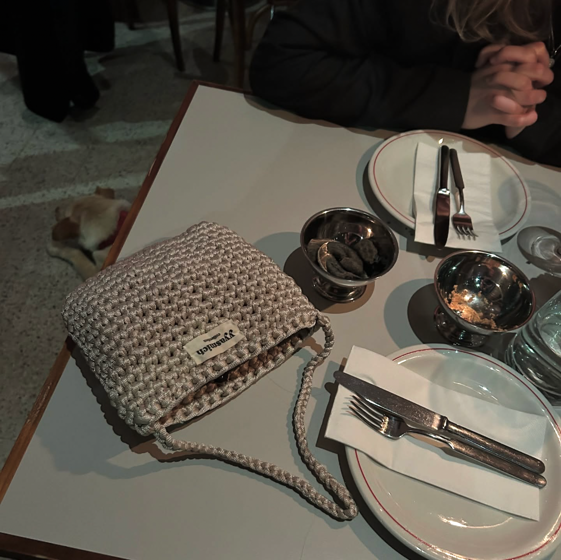 A handmade, satin pearl-colored shoulder bag, dripping with elegance.