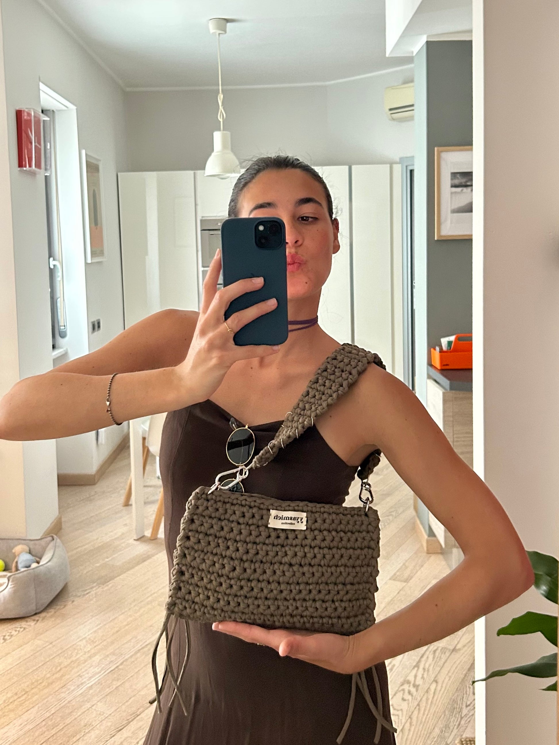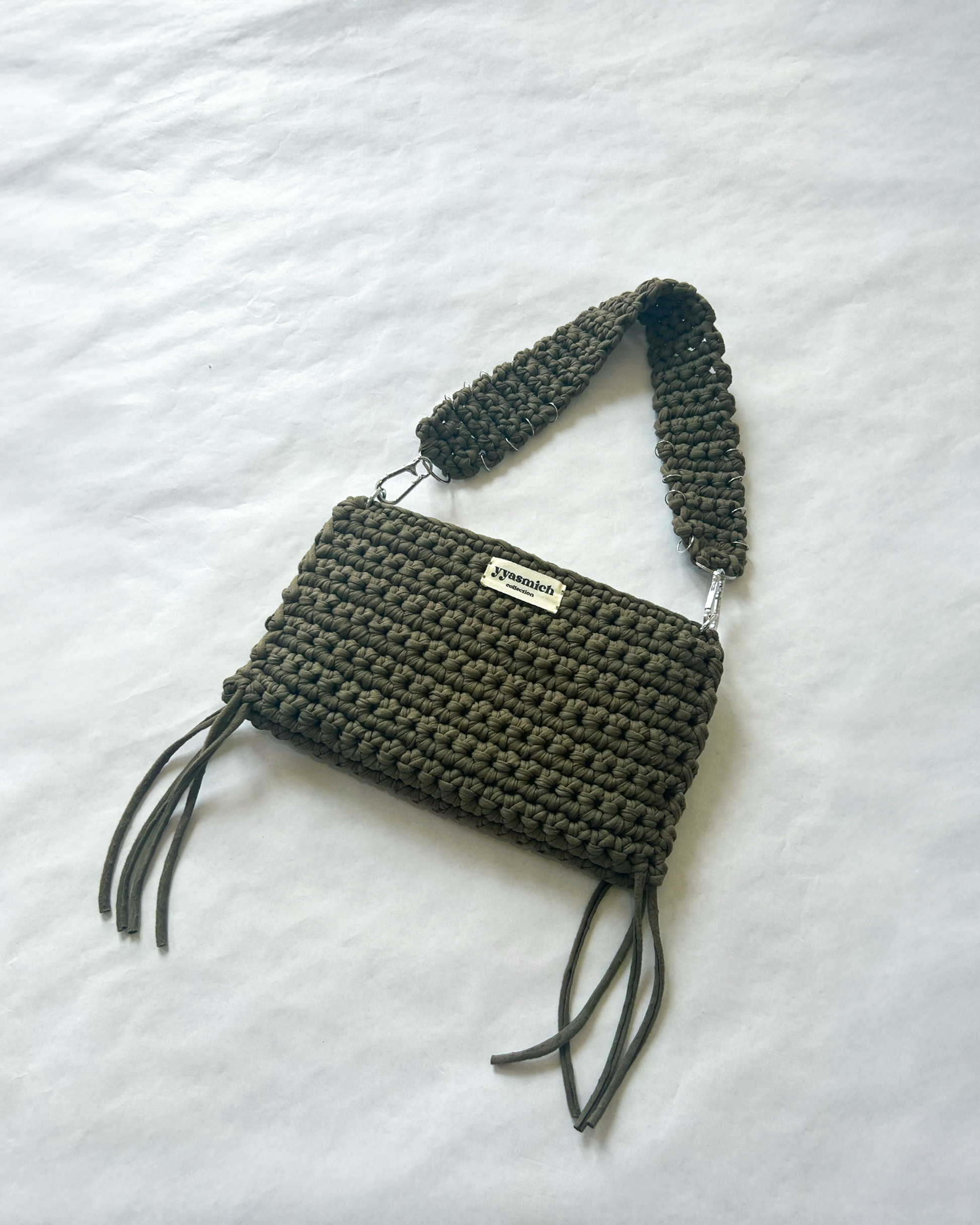 An military green handmade beauty with silver details that shimmer like stardust, ready to turn heads and add a touch of magic to every step.